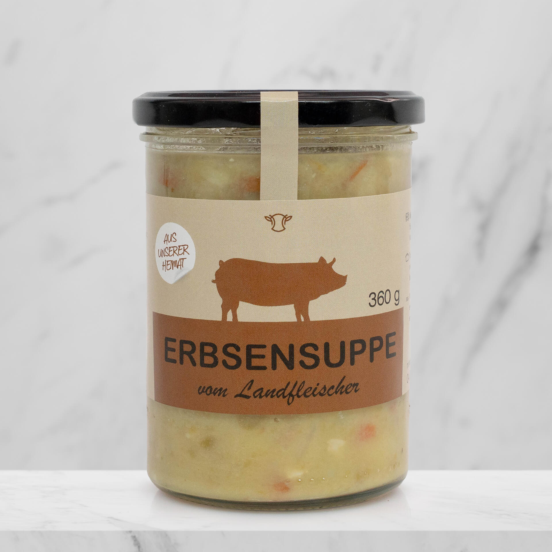 Kräftig, sättigend und voll im Geschmack – eine Erbsensuppe wie man sie vom Landfleischer kennt.